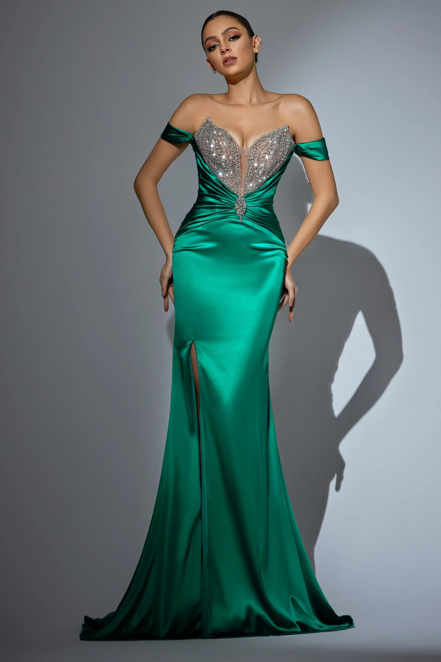 This luxurious evening gown is lavishly adorned with intricate hand-beaded embellishments that shimmer with every movement, showcasing exceptional craftsmanship and elegance. Designed to exude opulence and sophistication, it?? a true statement piece for any high-end occasion.